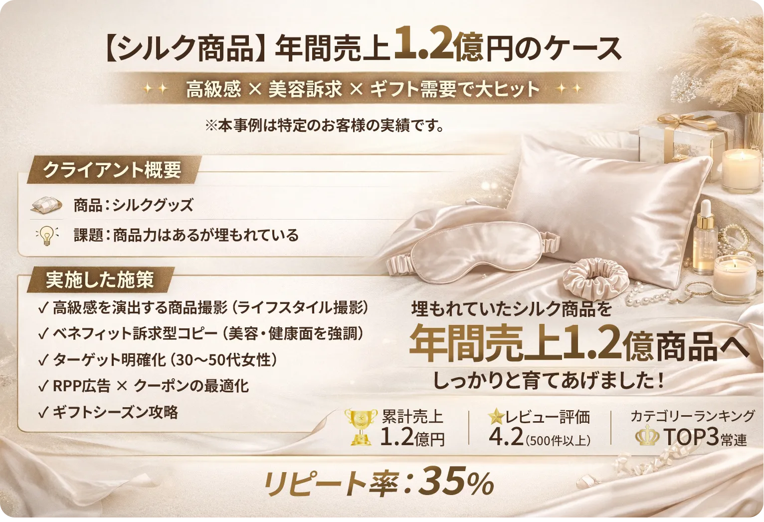 ※本事例は特定のお客様の実績であり、商品力、市場環境、お客様の実行力など様々な要因が重なった結果です。